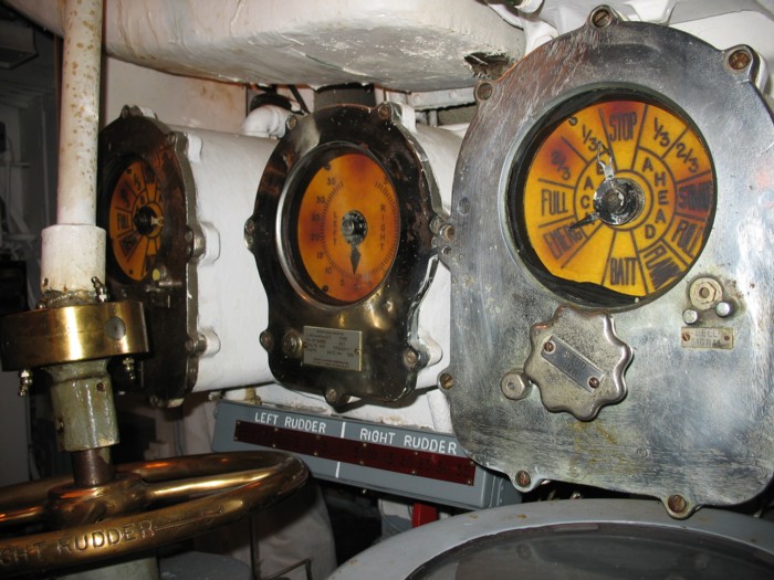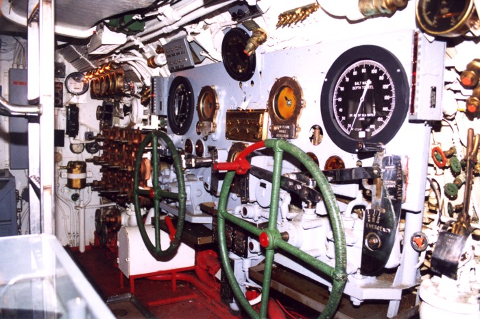 to right), bow plane and stern plane controls (bottom