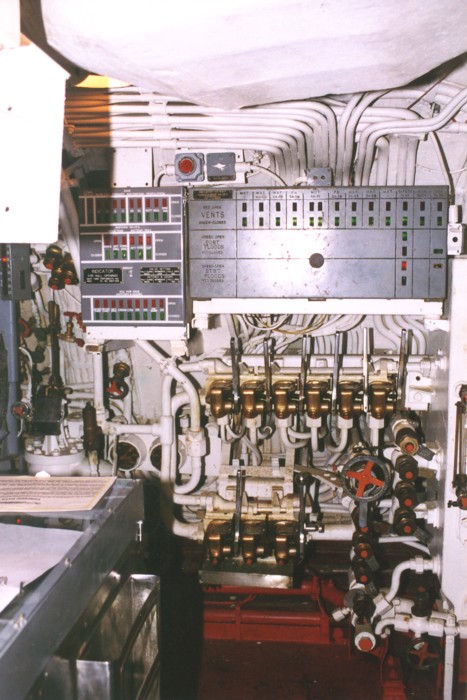 The pump room is below the control room deck plates.