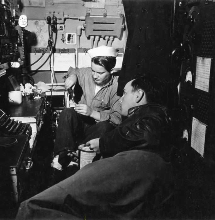the aft end of the compartment is the radio room. Barely