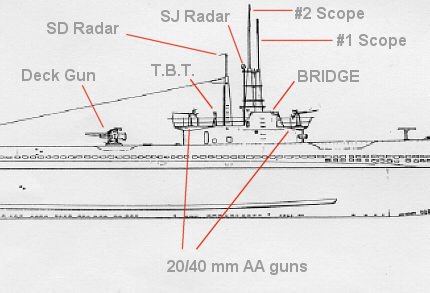 torpedoes or the main gun. Later in the war, a 40-mm was usually